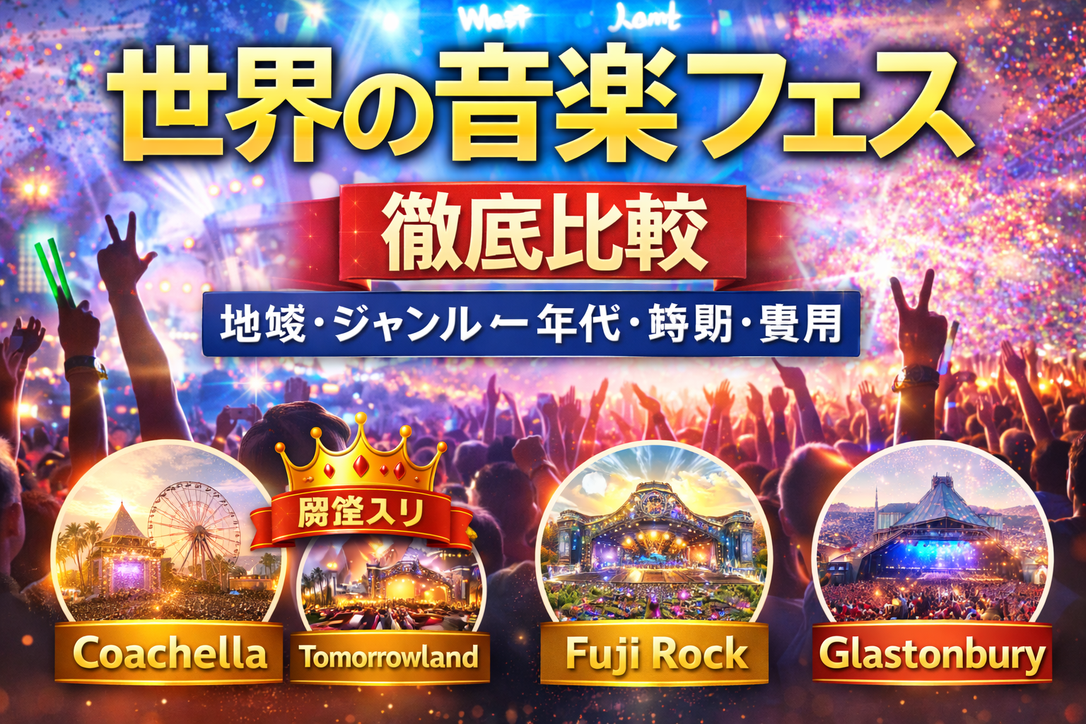 本記事では「比較の殿堂」らしく、世界の主要音楽フェスを“感覚”ではなく“データと特性”で比較。